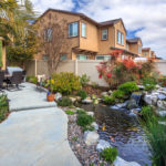 This 2065 square feet model like home features 4 Bedrooms and 3 baths. As you enter this end unit you are greeted with the dark hardwood floors which leads to the kitchen with a large island, granite counter tops, custom back splash and stainless steel appliances. The open floor plan is enhanced with lots of natural light and great room with built in entertainment center. There is a dining area, large mudroom, and a downstairs bedroom with a full bath. The second floor offers an expansive main bedroom suite with bath including dual vanities and a separate tub and shower. There are two additional bedrooms and a hall bath that has dual vanities as well. The upstairs laundry room has a large storage area. The owners refer to the backyard as their tranquil sanctuary and the waterfall pond creates a peaceful environment both inside and outside of the home. It is outdoor living at its finest. This home is built for entertaining and is only a short walk to several parks, 24 hour gym, the 9000 SF community center with pools, BBQ areas, fireplaces, and sports courts. Original owners put lots of love in the home and show pride of ownership. Close to all amenities and freeways. This home is an ABSOLUTE MUST-SEE!